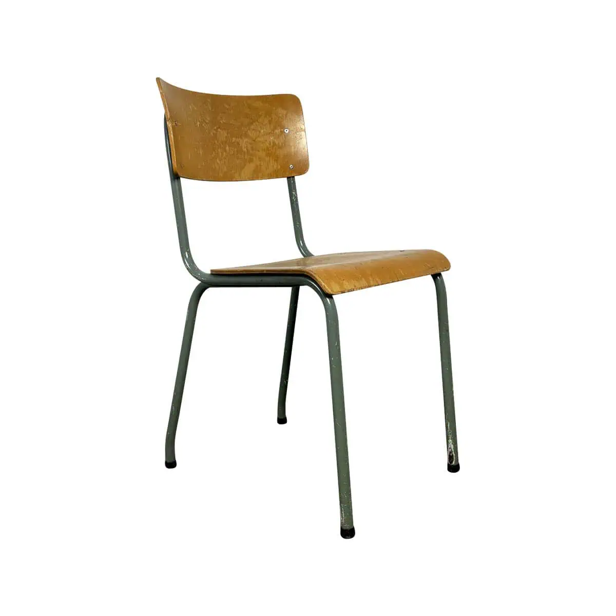 Olvin vintage houten groen metalen schoolstoelen