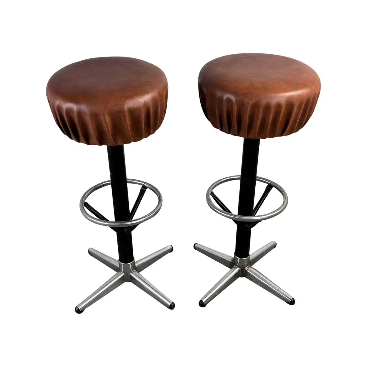 Set van 2 Industriële draai barkrukken cognac leren zitting