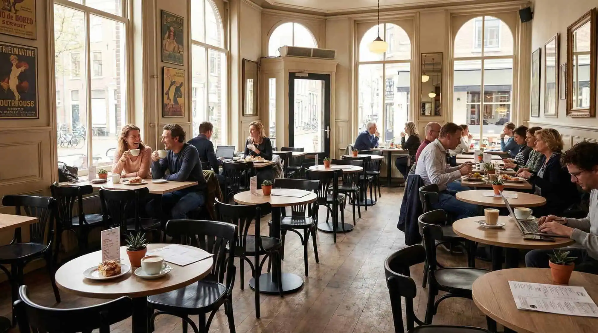 De gebogen lijnen van deze café stoelen zorgen voor een elegant en klassiek uiterlijk.