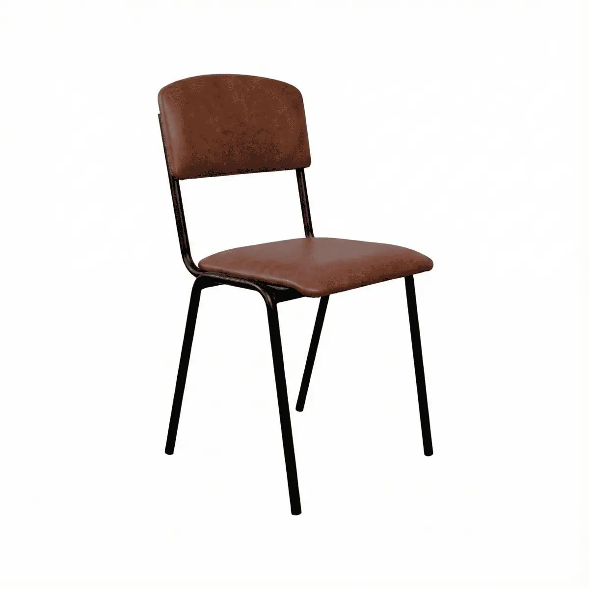 Deze prachtige met cognac kunstleer beklede horeca stoelen hebben een stevig metalen frame met ronde buis.